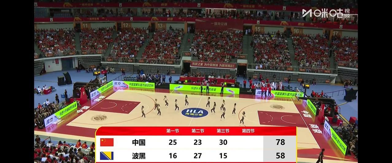 中国男篮下起了可怕的三分雨!三节结束78:58领先波黑队20分。 第三节中国队打