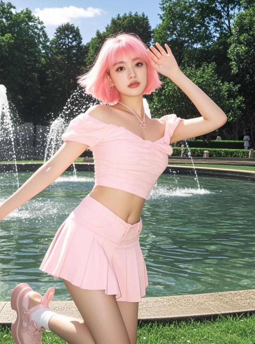 水珠在发丝间闪烁,绿草在裙下蔓延