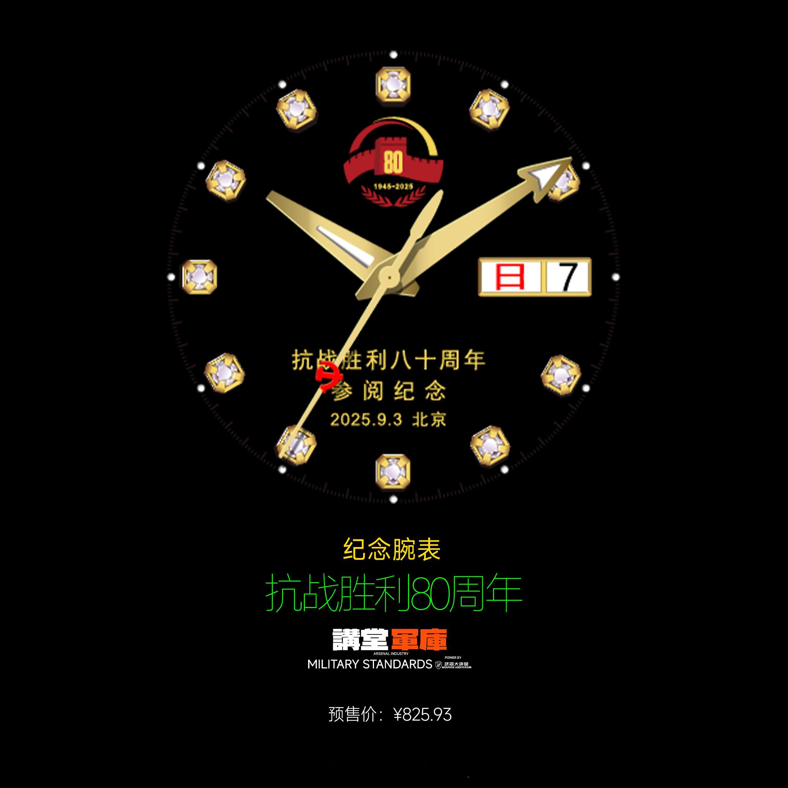 2025年9月3号,中国抗战胜利80周年阅兵纪念表已经可以预定。
