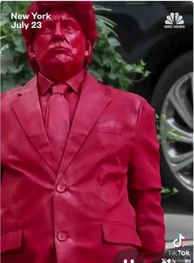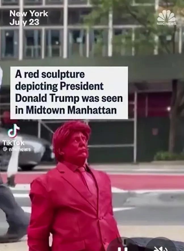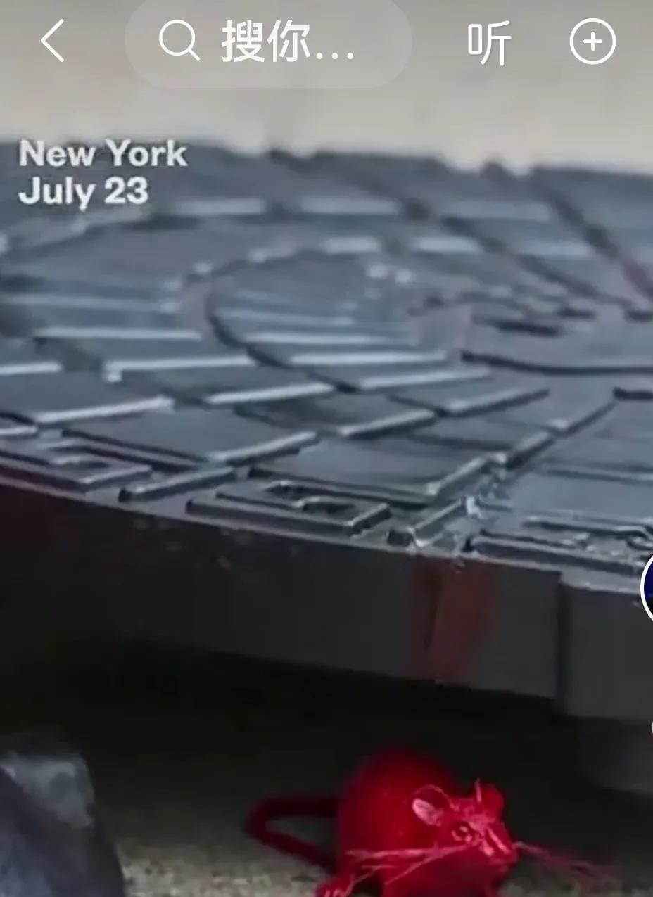 特朗普被“丢”进了窨井里! 笑死我了,哈哈哈哈。曼哈顿街头出现了一个巨大的特朗普雕像,不过是在窨井里,拍摄的视频配文是“A red sculpture depicting President Donald Trump was seen in Midtown Manhattan” “一座红色的雕塑——描绘总统,有人在曼哈顿中城看见唐纳德·特朗普!” 不仅特朗普坐在窨井里,窨井盖子还有一只红色的老鼠。