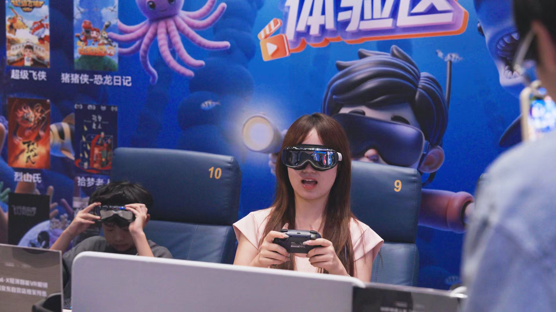 VR观影环节,我们挑选了适合全家体验的内容——《猪猪侠》《豫园奇妙夜》《飞行员的梦》等VR影片,让家长可以带孩子“走进”动画电影场景,感受“伸手就能碰到角色”的奇妙;