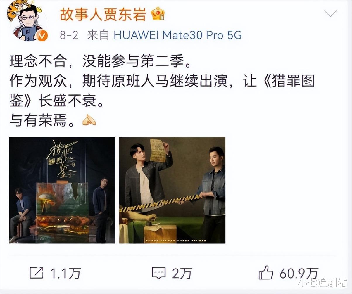此前因为《猎罪图鉴》换编剧这件事引起过热议,贾东岩因为不同意剧组的某些决定,因此退出编剧工作,网友对此也是议论纷纷。