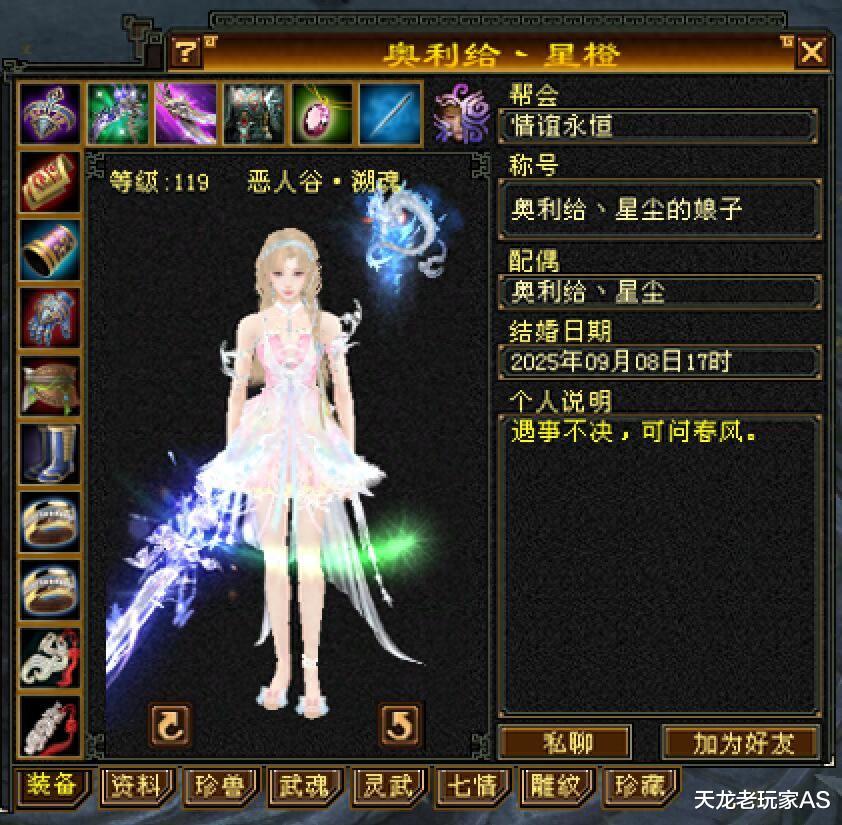 据说这是枫老板刚打造不久的,目前还在收购各种极品冰属性八星装备。