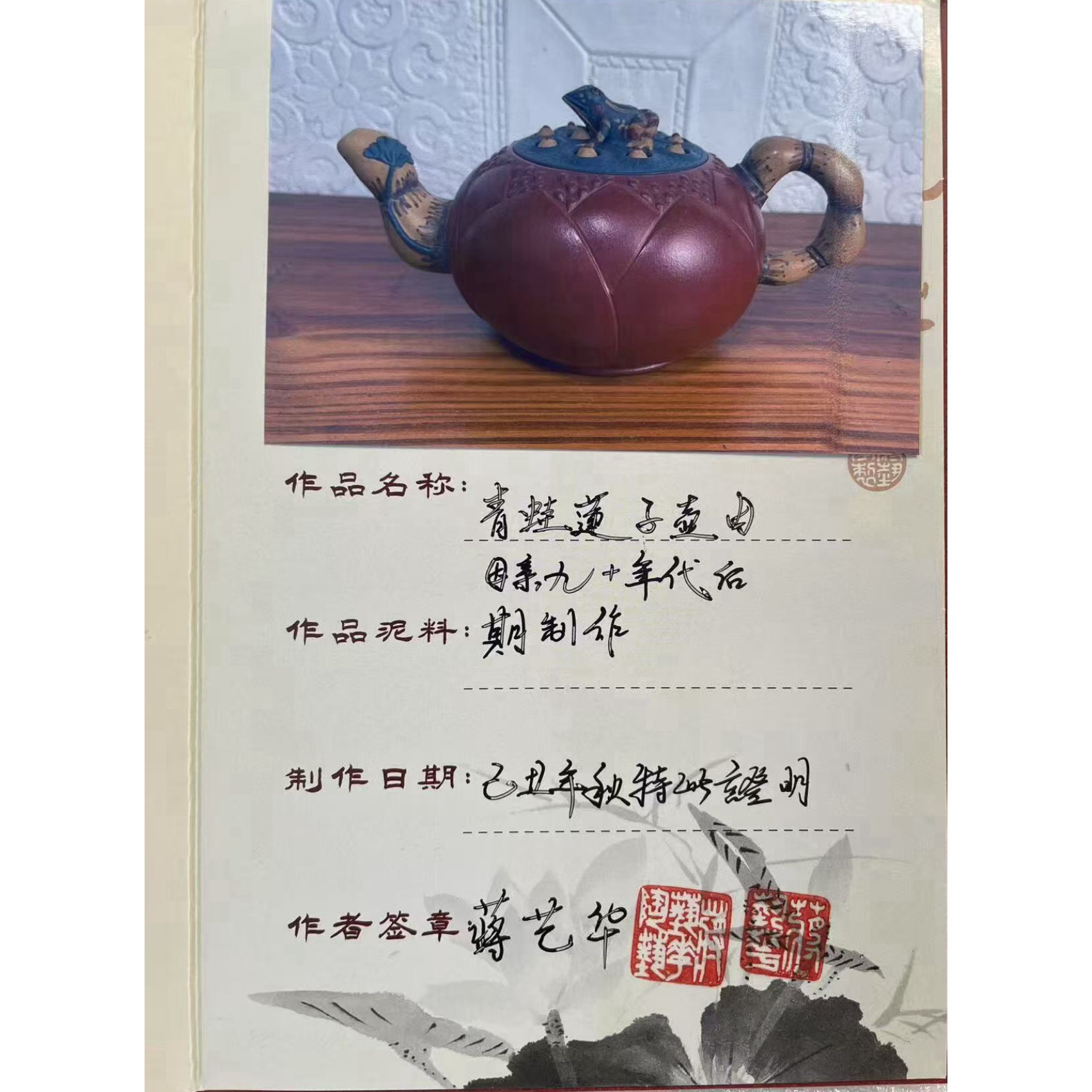 四、收藏价值:紫砂珍品的历史重量蒋蓉的《青蛙莲子壶》在紫砂艺术史上具有重要的价值。它不仅是蒋蓉个人艺术风格的典型代表,也是紫砂花货艺术发展的里程碑之作。