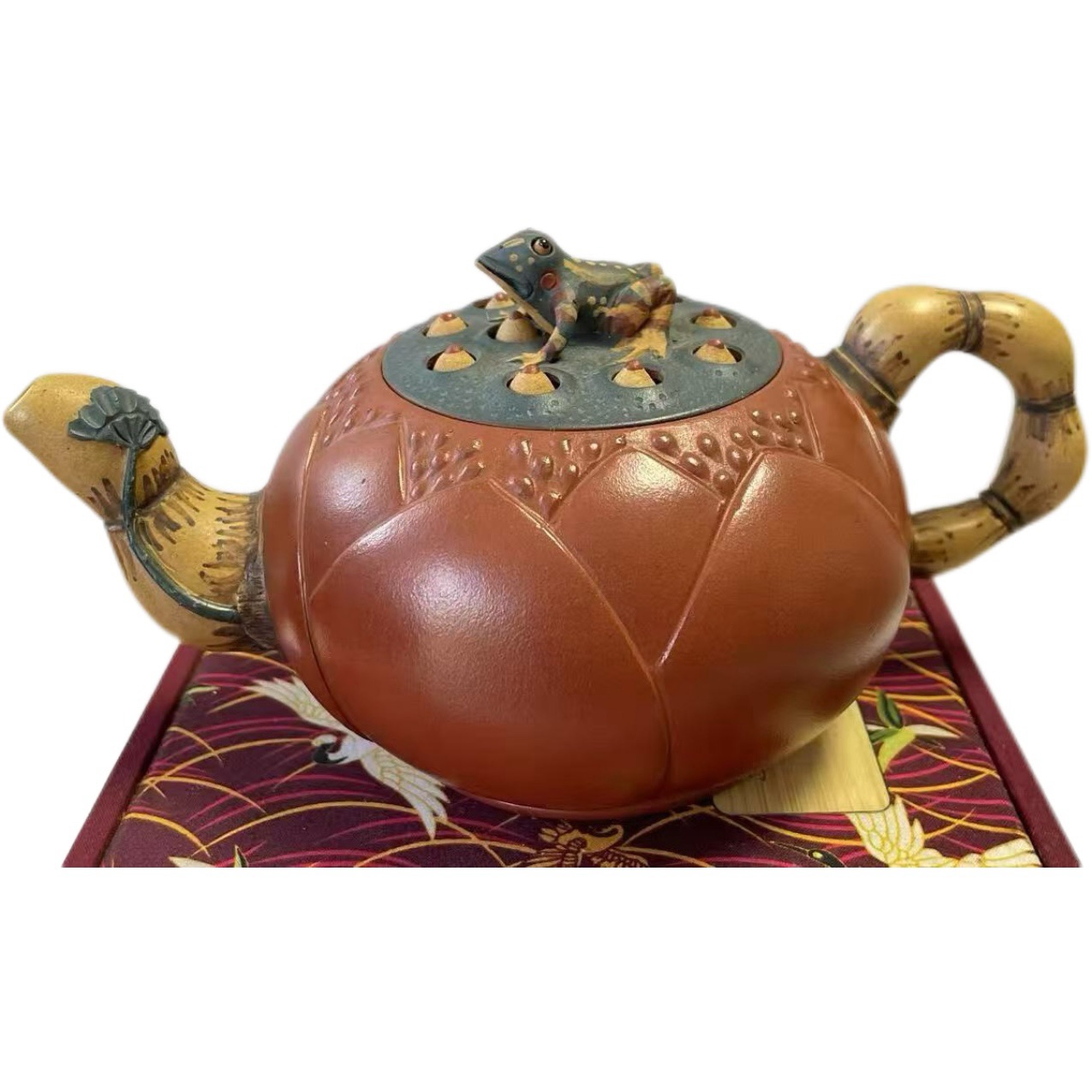 青蛙莲子壶不仅是一件实用的茶具,更是一件具有文化内涵的艺术品,它让人们在品茗的同时,能够感受到自然的美好与艺术的魅力,从而提升人们的精神境界与审美情趣。