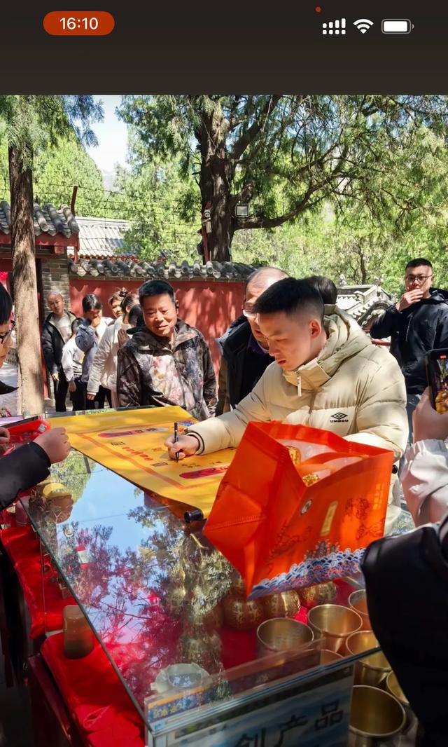 根据网友发来的现场图片,不知是不是山东还很冷,谢浩南穿着白色羽绒服,搀扶爸爸一起爬山,最后虔诚还愿,尤其是谢浩南写字的样子,被网友拍下,真的很认真,可以想象,浩南的为人也是认认真真、一板一眼
