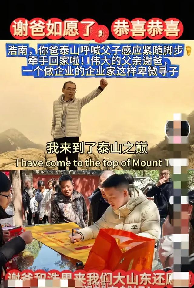 去年农历三月十五,在泰山奶奶的生日当天,谢爸爬到泰山去许愿,希望早日找到自己的儿子谢浩南,还说被泰山的风景治愈了自己