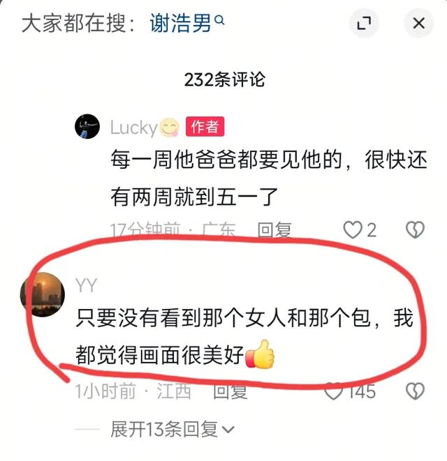 因为之前,每次谢爸与谢浩南相聚时,都带着郑琴,谢浩南还帮郑琴背包,据说郑琴这个LV包包价值2.8万