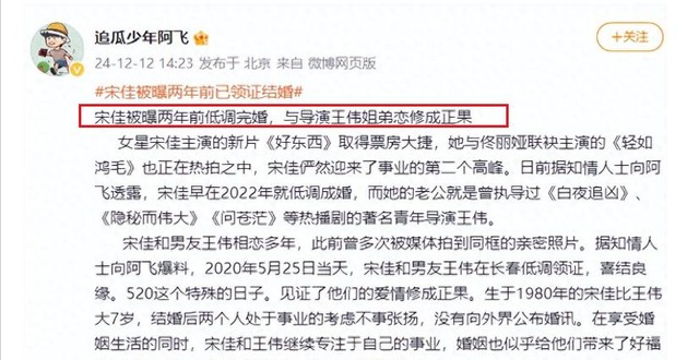 尤其是对于宋佳这样的中年女演员来说,本来属于自己的热度就不是很高,如果可以靠结婚来炒作一把,那又何乐而不为?