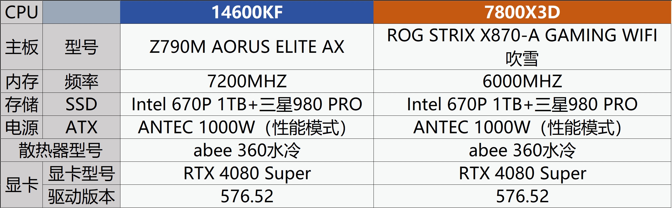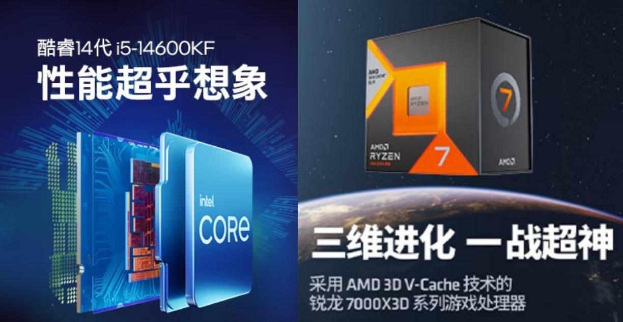 这里我们就以现在特别火的老牌中端CPU 14600KF与号称千帧新神U的7800X3D在同一水准的平台下,来看看实际我们使用中,两者的差别能有多大。