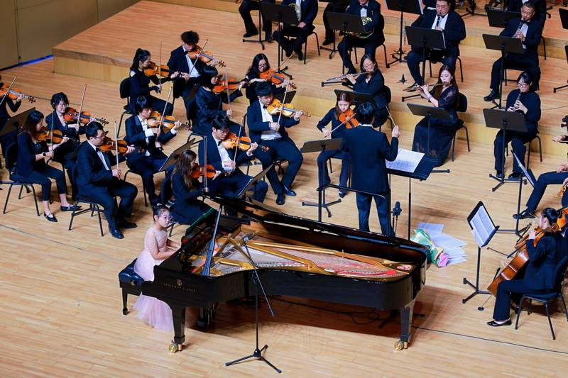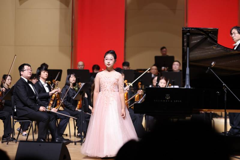 音乐会上,小演员们与交响乐团的合作默契十足,稚嫩却充满活力的演绎与乐团恢弘的旋律交相辉映,展现出新一代对音乐的热爱与潜力。其中,曹潇匀的表现尤为出众,她与乐团配合精准,在演奏中既展现出超越年龄的沉稳,又饱含着对音乐的真挚情感,每一个音符都传递出动人的力量,赢得了现场观众的阵阵掌声。