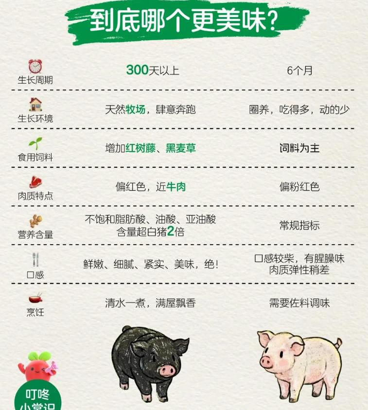 这种猪在肉质上与北方家养的白猪有着天差地别。广东黑猪的肉质更偏向于高蛋白的瘦肉,全身的脂肪率只占了一半,在口感上更细腻、Q弹,远比一般的家猪美味。