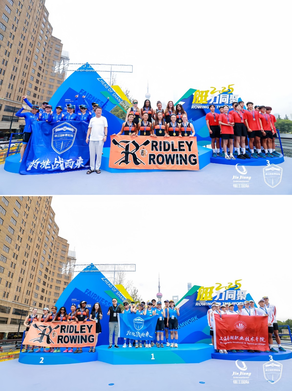 10月2日至3日,2025上海赛艇公开赛紧密衔接世锦赛,在苏州河火热开赛。作为俱乐部组及荣耀贡献组参赛代表之一,锦江国际赛艇队派出21名员工参与角逐男女混合八人单桨有舵手4.2公里追逐赛和500米城市冲刺赛,成功摘得1金1银。锦江国际集团党委书记、董事长赵奇,党委副书记、总裁张晓强,党委副书记刘冬玮等亲临现场观赛,为参赛选手加油助威。