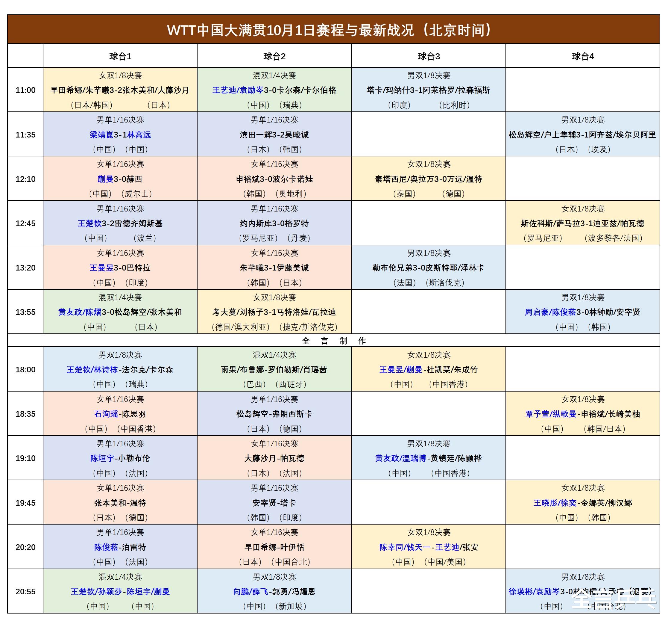 北京时间10月1日,乒乓球WTT中国大满贯赛继续进行,目前中国队已经结束正赛第四天上半场的较量,结果只有林高远在内战中出局输给梁靖崑,其余单、双打外战全部取得胜利,连赢6场不败,日本队则遭遇重创,伊藤美诚单打出局,张本美和女双、混双连败,详细战况请看下文。
