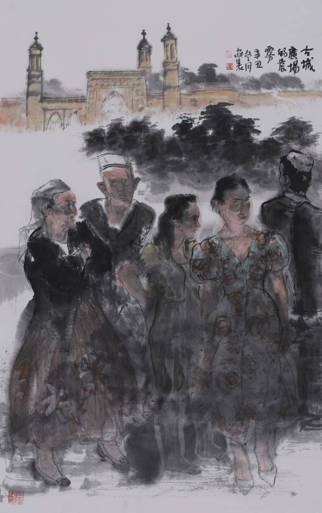 古城广场的晨雾 95X60cm 纸本水墨 2021
