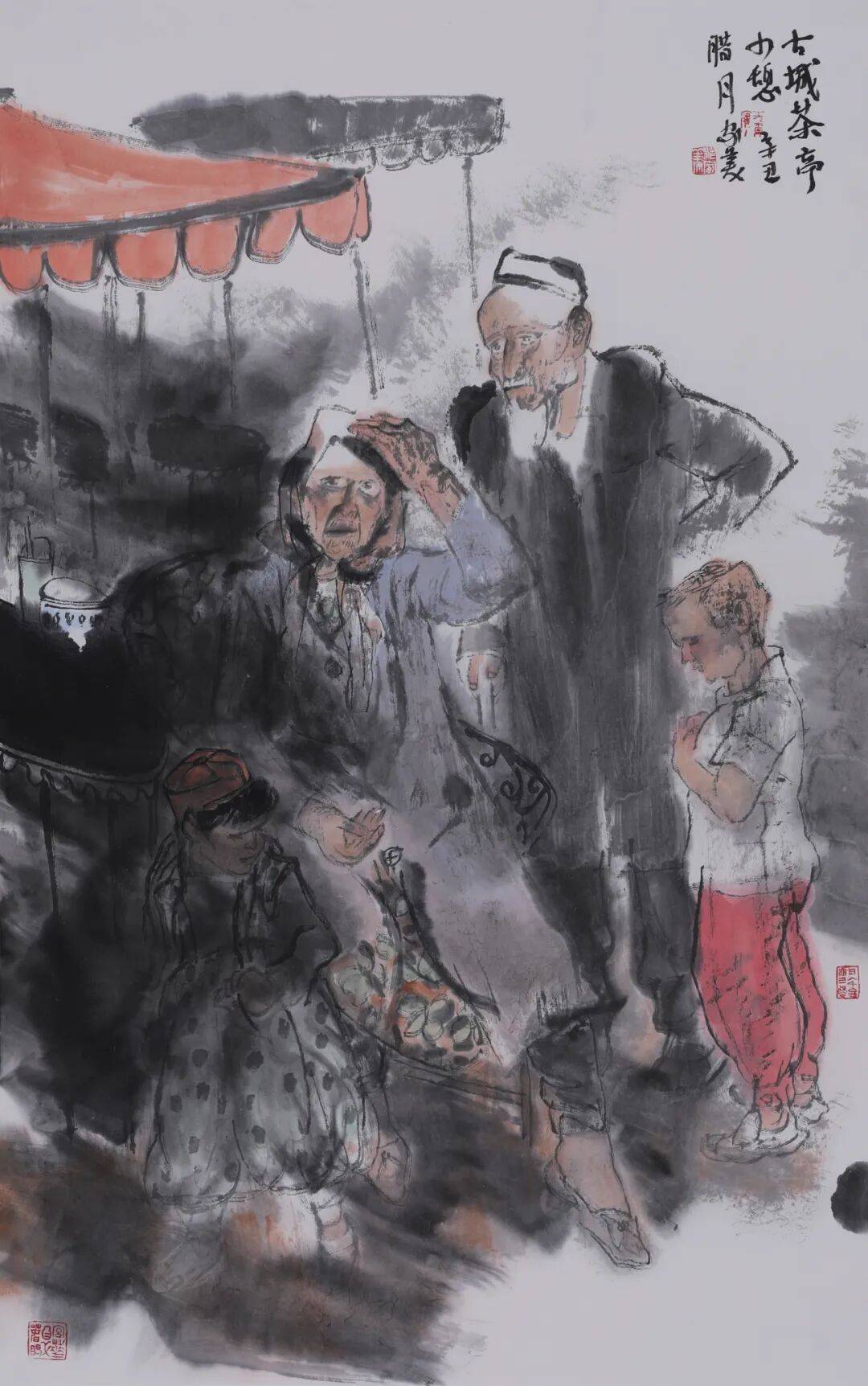 古城茶亭小憩 95X60cm 纸本水墨 2021