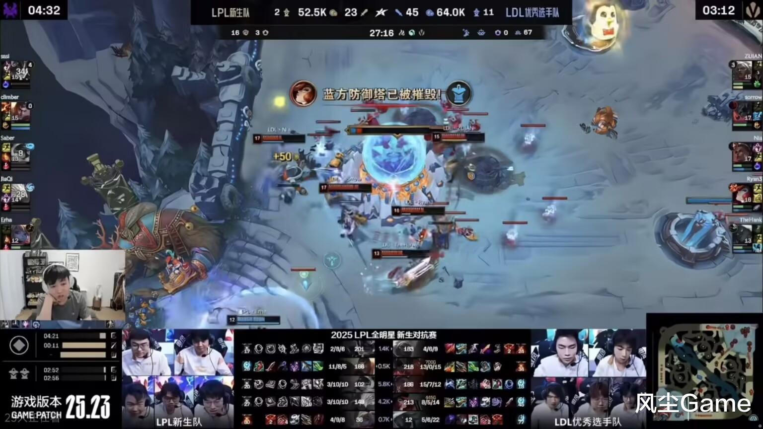LPL现在青训搞得还行的,也就只有BLG和TES了,未来几年,LPL的新生代选手,大部分都会出自这两队,全明星表演赛,官方也安排了LDL的新人,跟LPL的新人进行较量,结果很抽象,LPL赛区的新人们,被LDL当成人机暴打,27分钟的比赛,LDL队打出45个击杀,经济领先一万二。