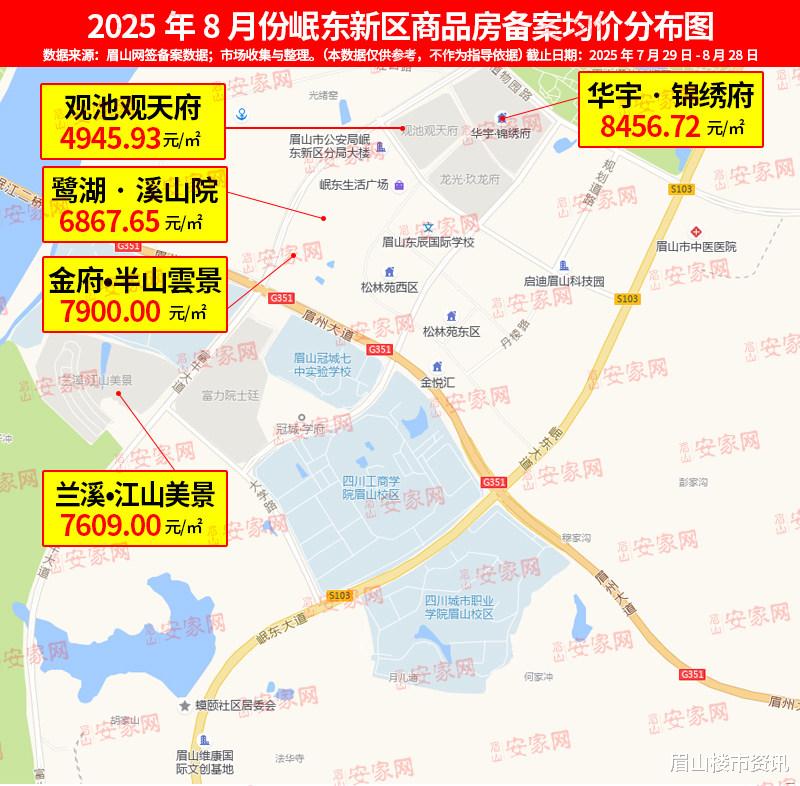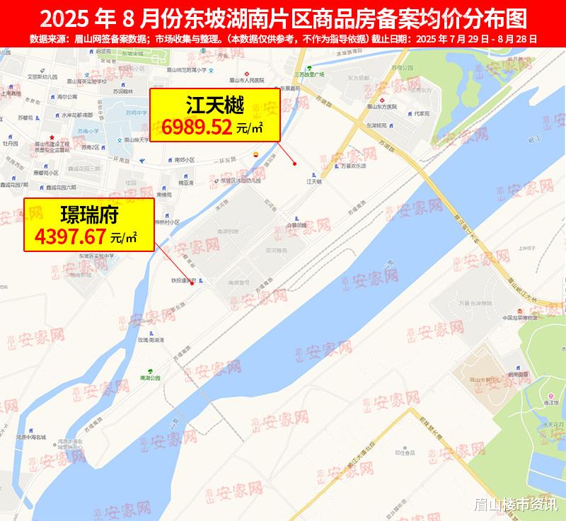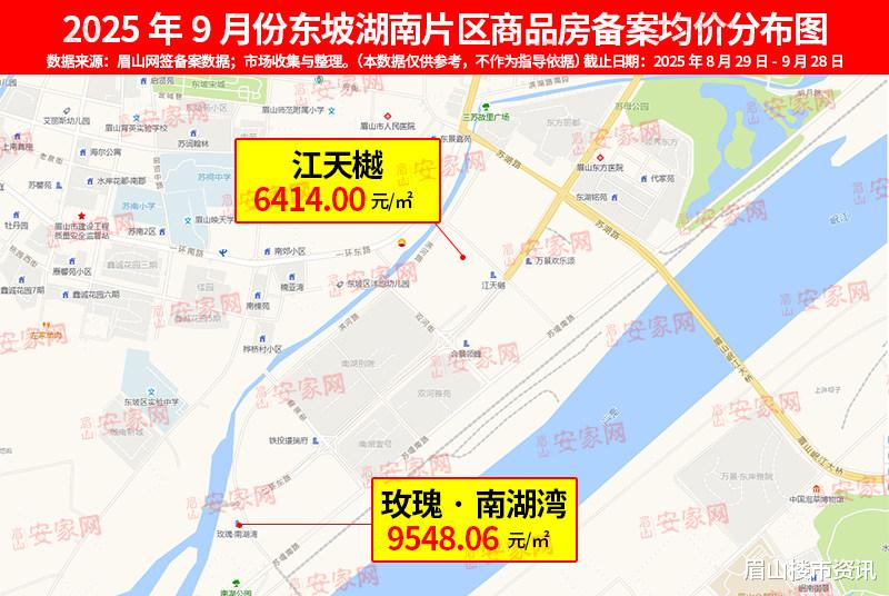 该片区因单盘产品差异,房价呈现“极端分化”:玫瑰·南湖湾因叠拼产品集中成交,房价跃升至9500元/㎡ 的区域高位;而江天樾房价则明显回落至6400元/㎡ ,成为眉山各片区中“房价悬念最大”的区域。