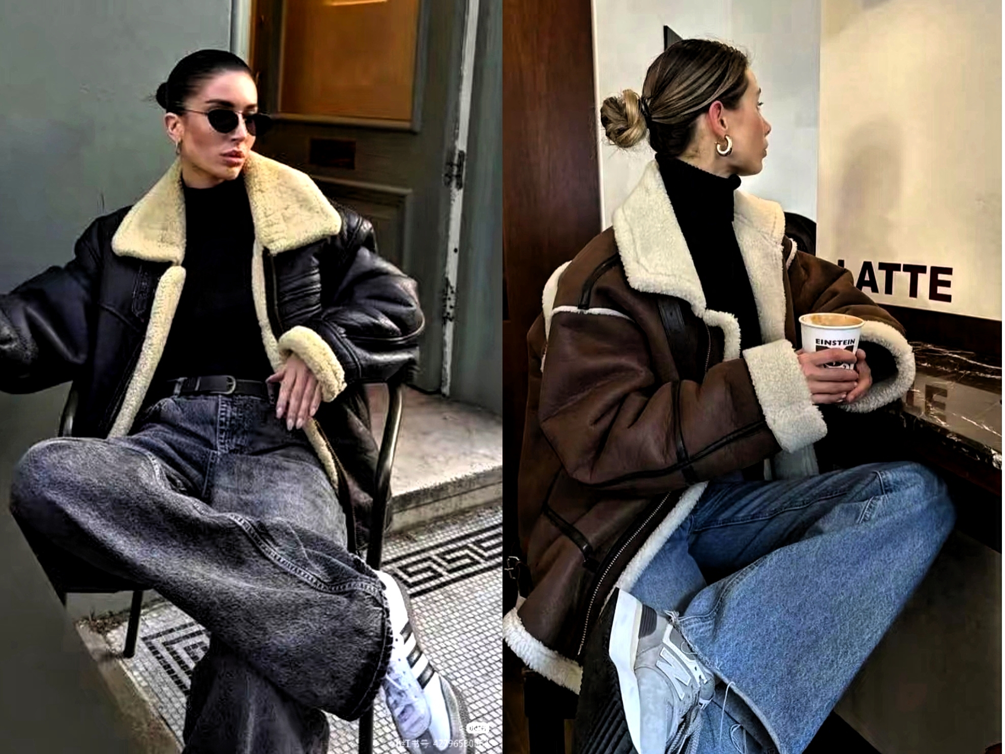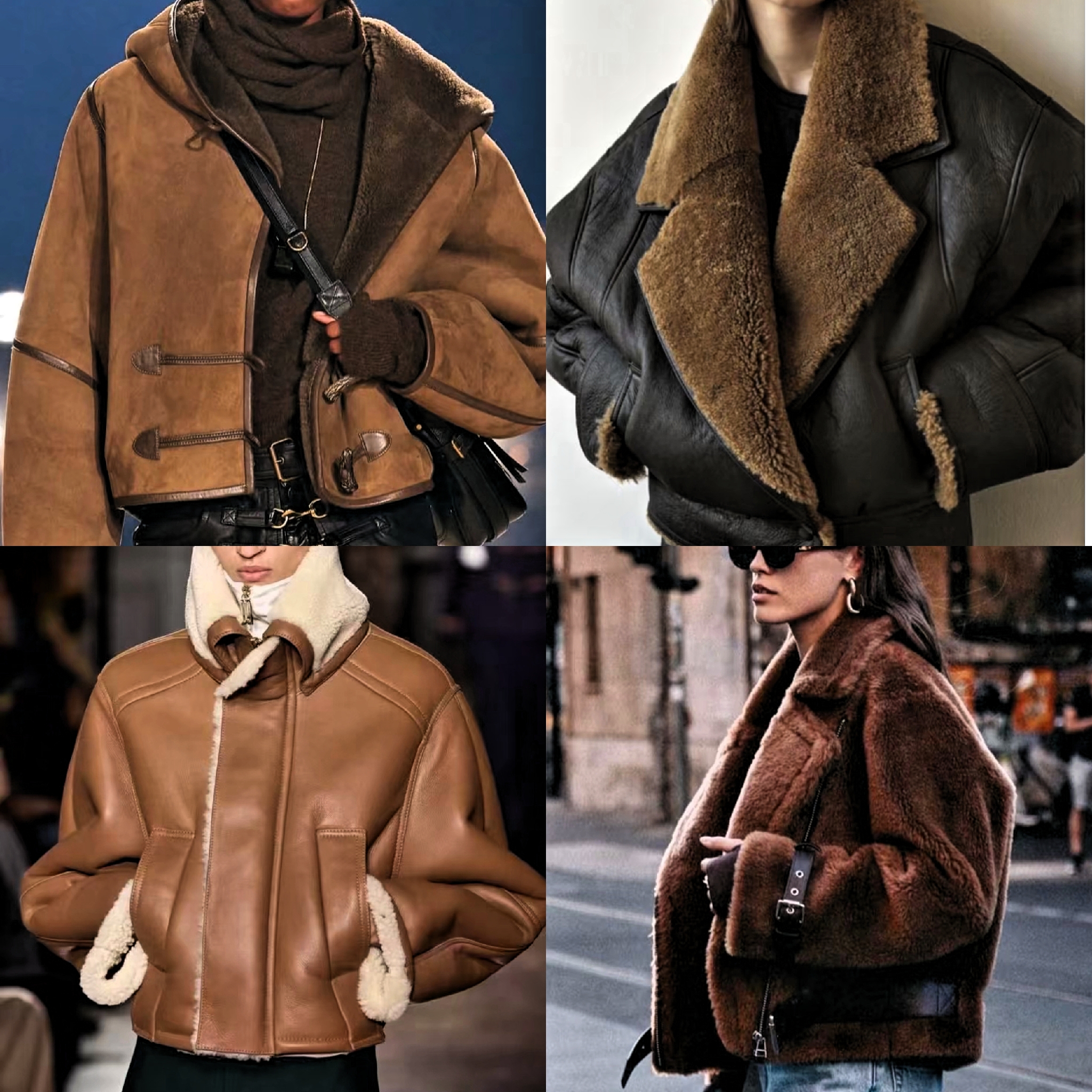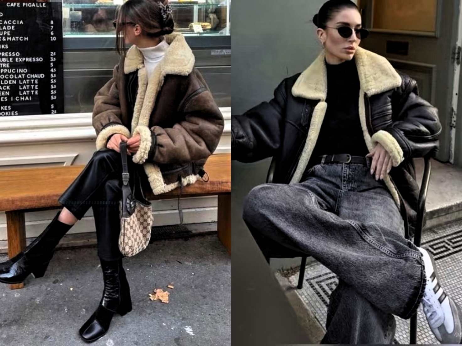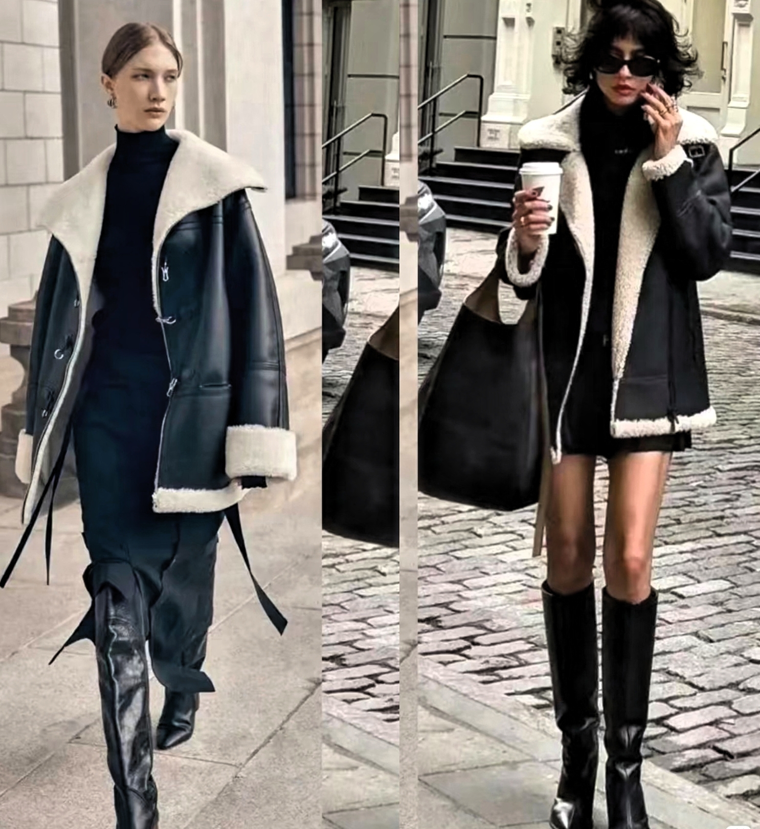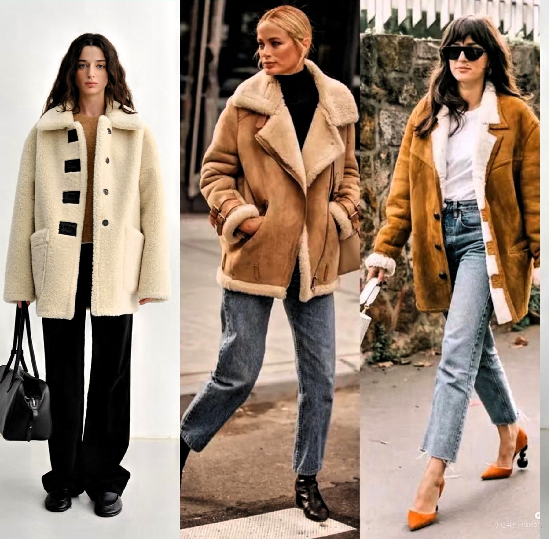 直筒型皮毛一体衣,里面加毛设计,给人一种宽松与膨胀感。下装选择烟管裤或修身半裙搭配,能弱化上半身的臃肿感,整体利落又干练。非常适合身材不完美女性,打造遮肉显瘦造型。