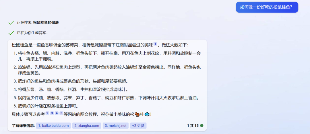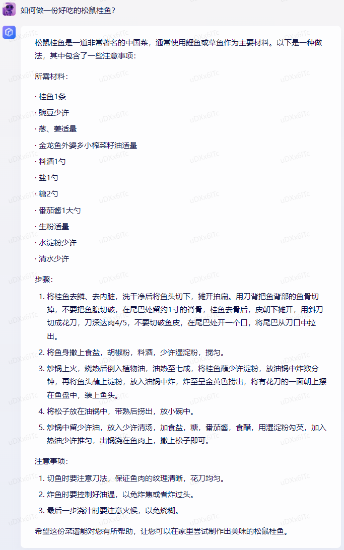我们先测试了一些日常问题:如何做一份好吃的松鼠桂鱼?