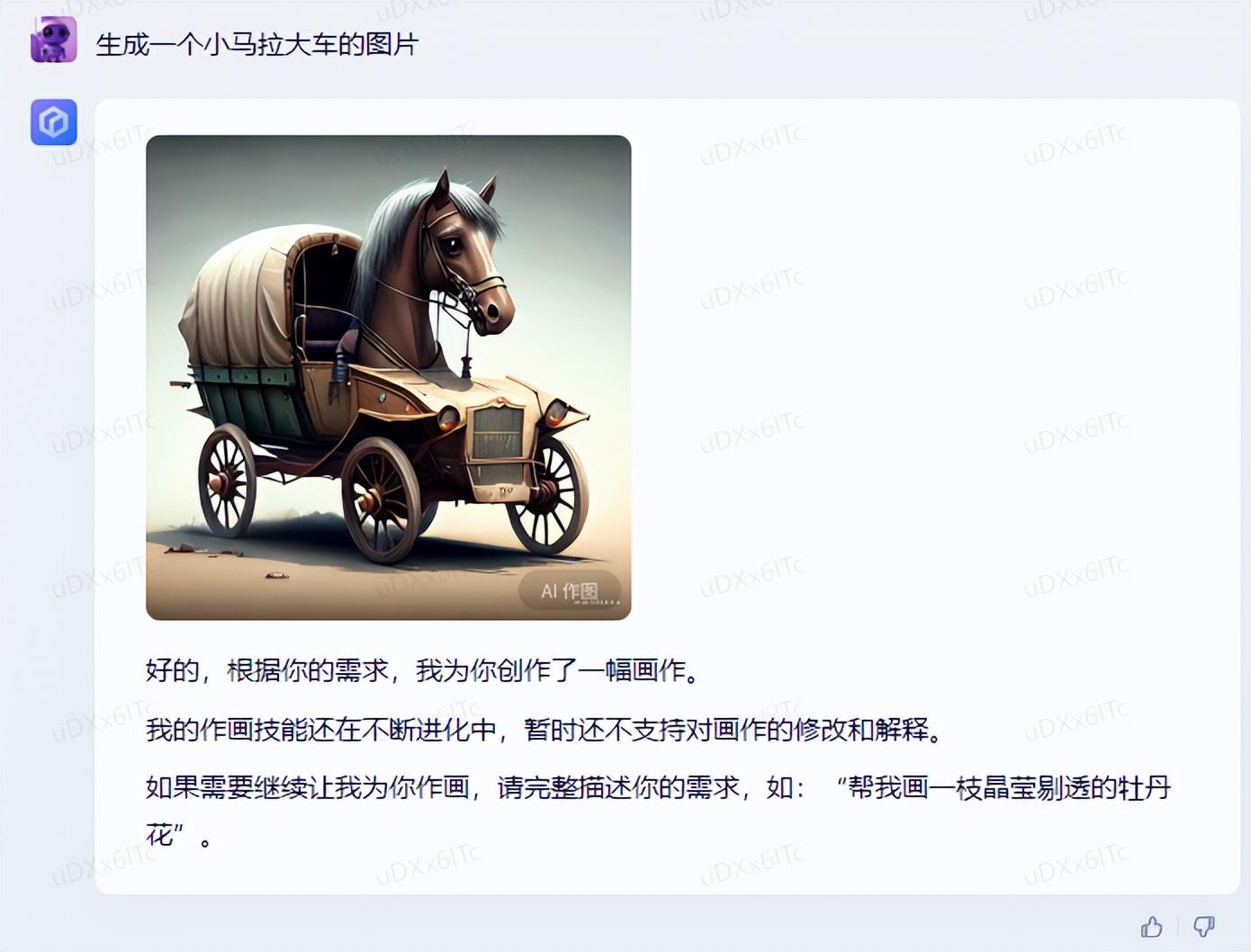 但在让它生成了一只小马拉大车的图片后,我们显然是高兴早了,这 TM 是真马车啊。。。