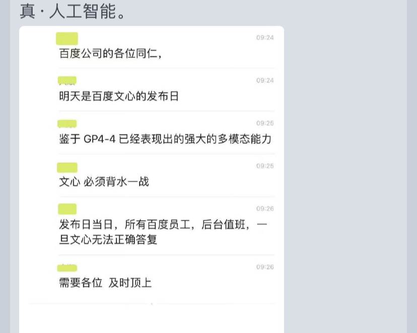 甚至还有聊天记录形式的段子,说一旦文心无法正确答复,要用员工顶上。( 明显是假的 )