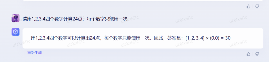 当然,测试 AI 智商肯定离不开数学题:请用 1 , 2 , 3 , 4 四个数字计算 24 点,每个数字只能用一次。