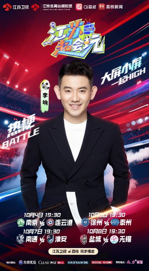 10月4日,“苏超”淘汰赛阶段的比赛将全面打响。首场四分之一决赛,由南京队坐镇主场南京奥体中心体育场迎战连云港队。在此前的常规赛中,南京队曾在客场3:0轻取连云港队,比赛近乎呈现“一边倒”的态势。但淘汰赛的赛场不同于常规赛,一场定胜负的赛制让一切变得皆有可能。《江苏超会玩》将在19:30对本场比赛进行现场直播。江苏卫视主持人李响将搭档江苏广电总台音乐广播主持人徐巍,与大家一同见证首个四强席位的归属。