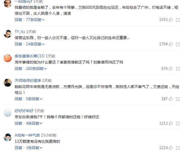有网友开玩笑说:“凭本事借的钱,为啥要还呢?”不知道你的借呗和白条有多少额度呢?我们一起来看看网友们都是如何吐槽的。
