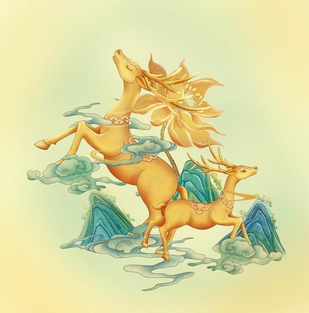 有一种兽,形状像马,白头、红身、斑纹像虎,声音像歌谣,名叫鹿蜀,佩戴它的皮毛可以子孙满堂。