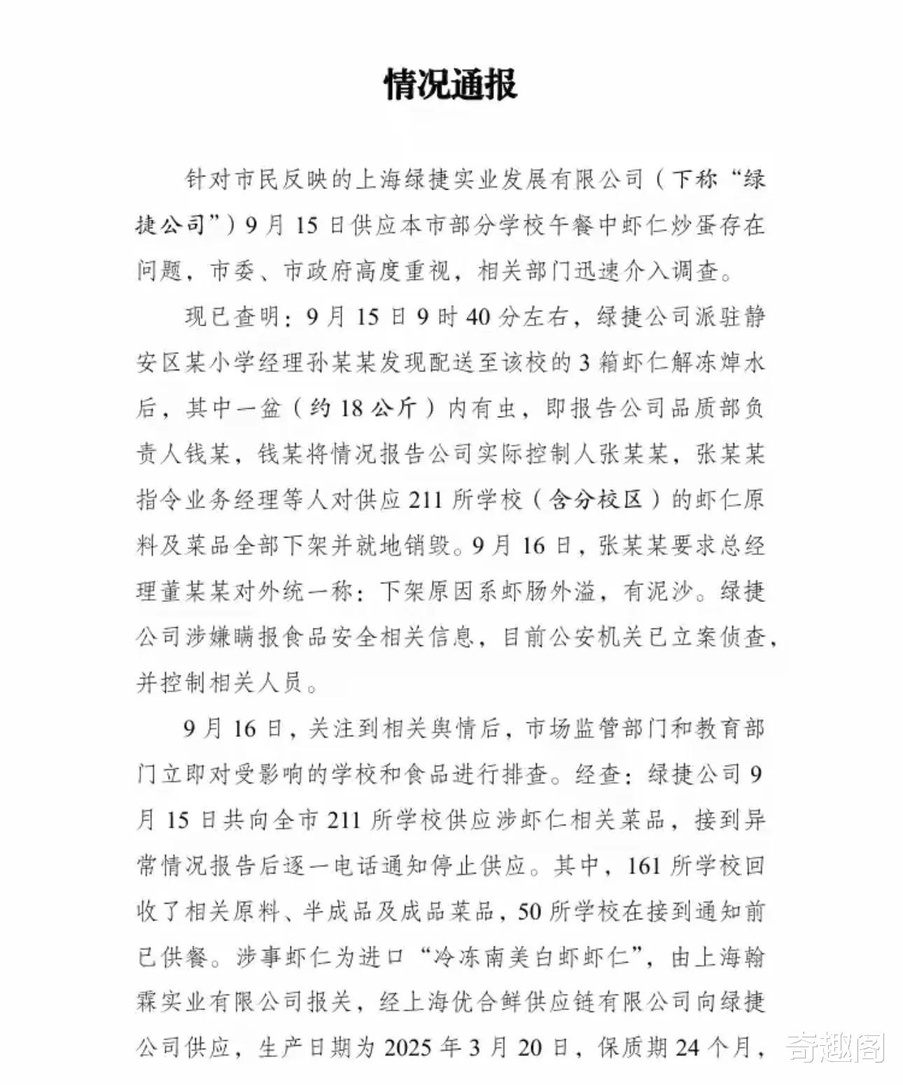 2025年9月23日,上海“发臭午餐”事件的调查结果正式公布。结果为绿捷公司涉嫌瞒报食品安全相关信息,公安机关已立案侦查,并控制相关人员。我们客观来说,这件事情处理的效率其实算很高了,从9月15日发现问题到发布通报,只用了一个星期。
