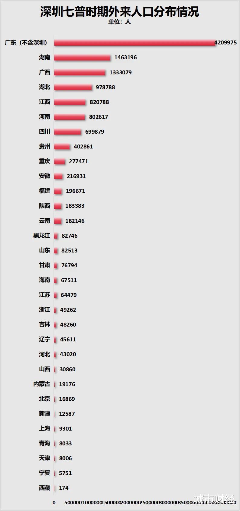 外省人口第二多的地区,和深圳一样,也是广西,接近一百万。河南第三,湖北第四,江西第五。