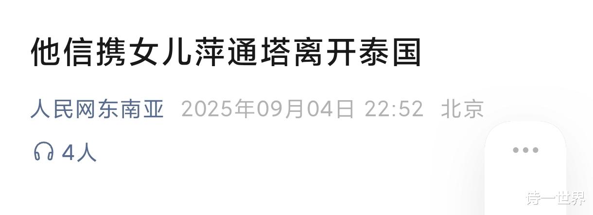 泰国媒体随后获悉确认:他信已与家人一行5人前往新加坡办理私人事务,随行者包括其女儿萍通塔。