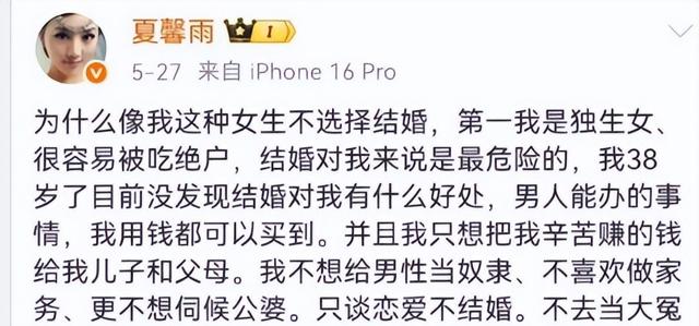 或许正是因为职业生涯的不顺利,夏馨雨才想到了以散布另类观点这种哗众取宠的方式博取流量,并且还在这条歧路上越走越远。
