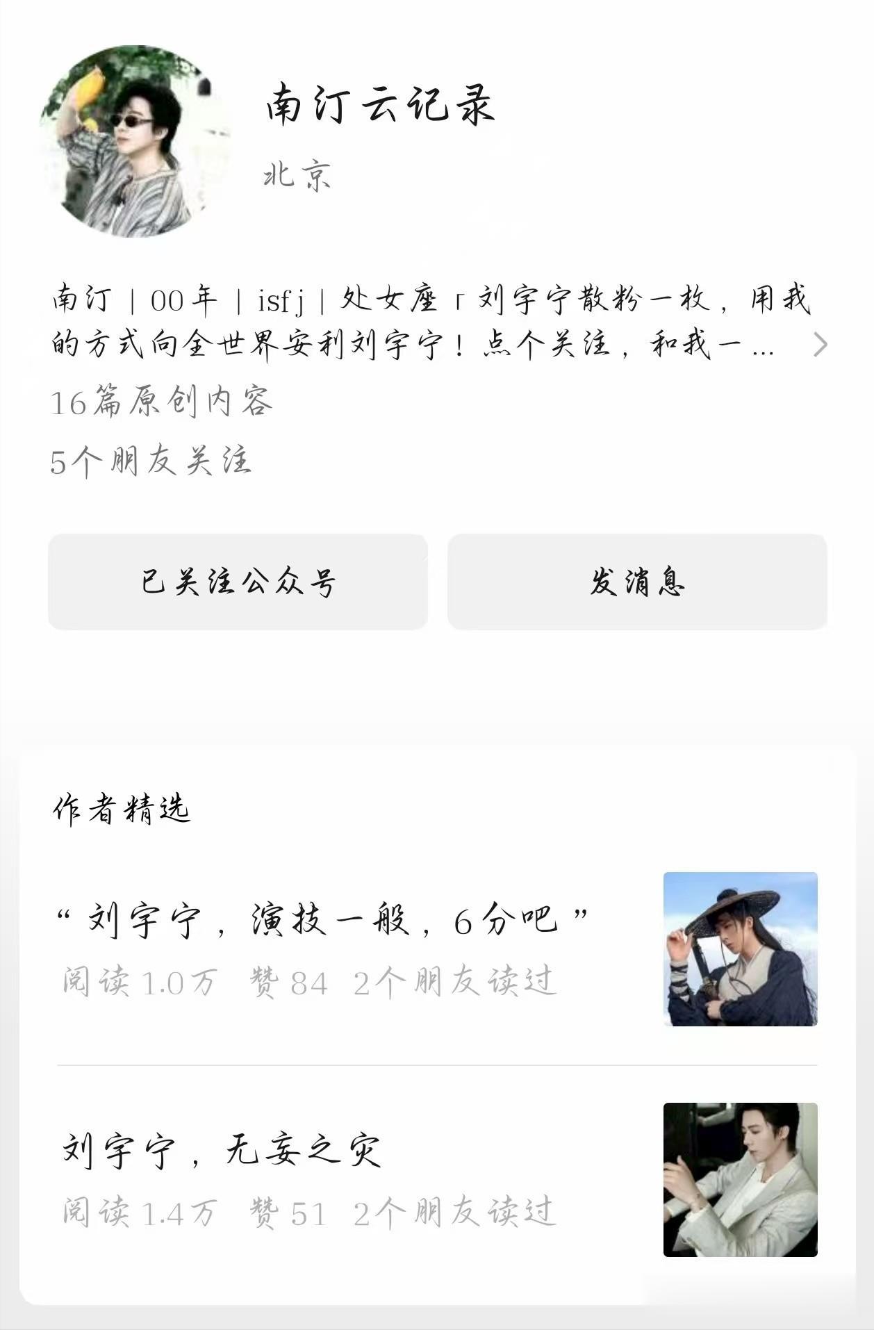 最近更新不多,因为在隔壁做了一个只写刘宇宁的gzh。