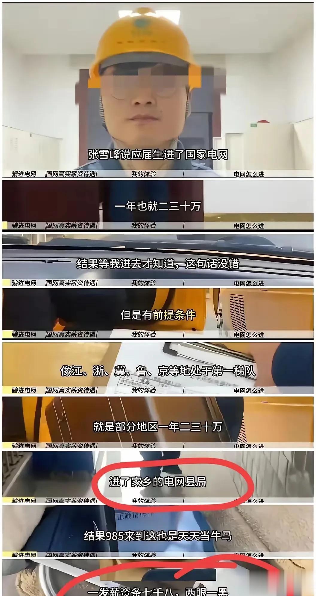 有的人还吐槽后悔听张雪峰建议进县城国家电网,发现月薪仅7000多元,和当初听说的二三十万,差了不止一点半点,一度质疑自己选错了路。