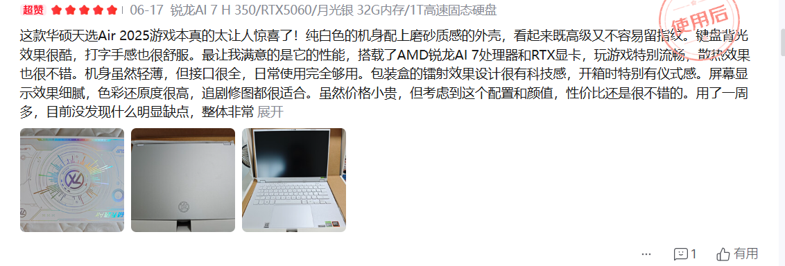 高颜值的外观和定制周边固然很加分,但要说真正让华硕天选Air × 时光代理人联名礼盒款脱颖而出的,是其强大的性能和卓越的用户体验。华硕天选Air作为面向年轻群体打造的高能轻薄本,其延续全能基因,在仅重1.46Kg、薄至1.69cm的机身下塞进了AMD锐龙AI 7 H 350处理器+RTX5060独显,为日常多任务处理、建模渲染、剪辑创作乃至3A游戏,提供强劲性能支撑,确保在面对各种复杂任务时都能享受到流畅且高效的操作体验。