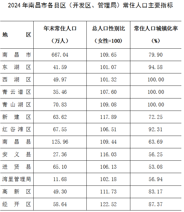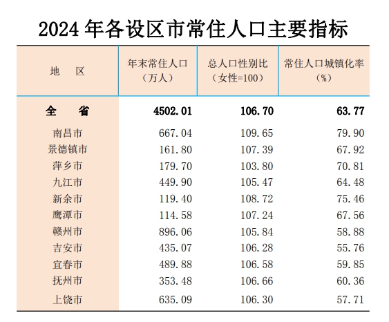 (2)文中图片《2024年各设区市常住人口主要指标》来自江西省府网站/数据江西/数据发布。《2024年南昌市各县区(开发区、管理局)常住人口主要指标》来自进贤县政府网/统计局信息公开/其他法定信息。