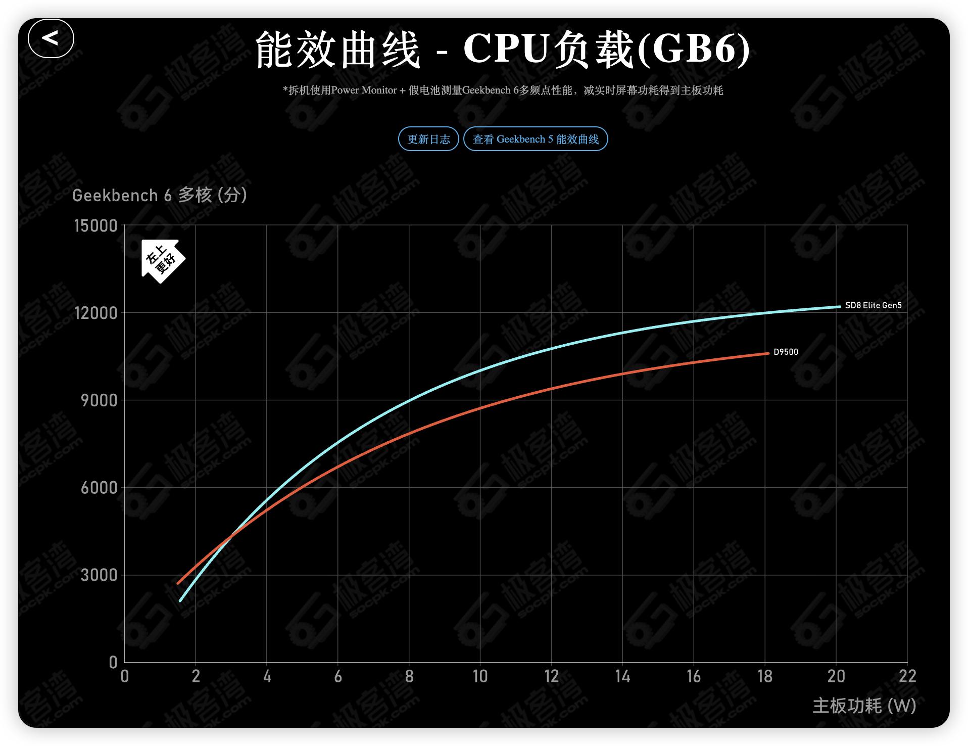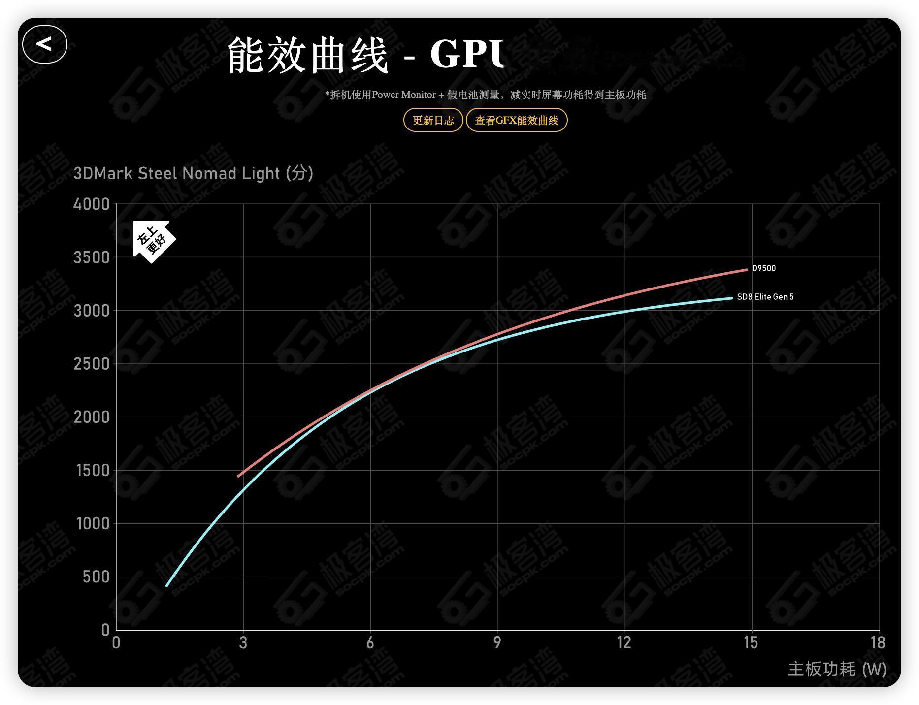 就性能跑分来说这两款处理器都很强,关键还是能效上面的差异,骁龙8 Elite Gen5在CPU能效上面具有优势,天玑9500在GPU能效上面具有优势。