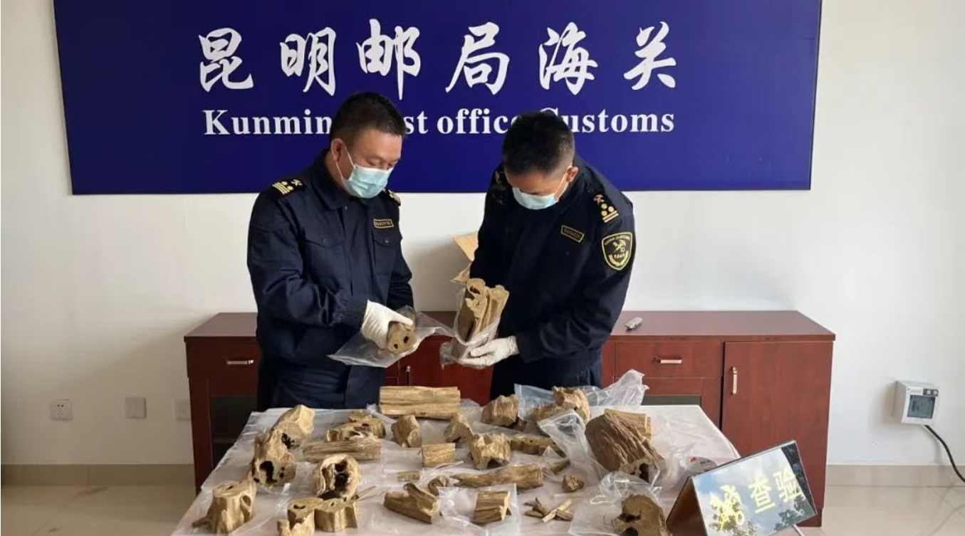 近日,昆明邮局海关在进境寄递渠道查获走私沉香木5.41千克。