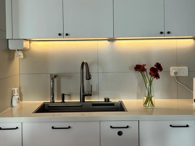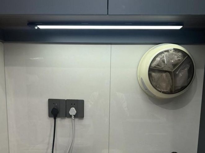 我家这次装修,媳妇就坚持了要给吊柜做感应灯,做法就是从吊柜内引线,在柜体安装磁吸式的感应灯条。
