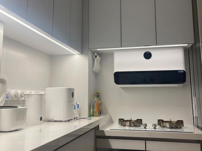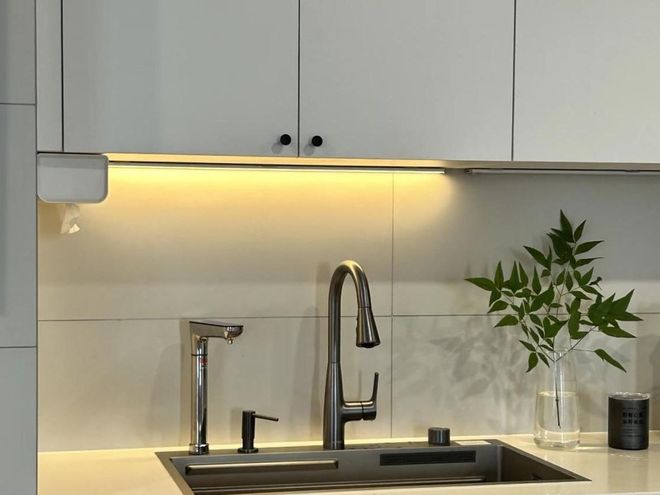 吊柜感应灯完美地解决了台面背光的问题,而成本仅仅一二百元,比定制橱柜的灯带要节省至少80%。