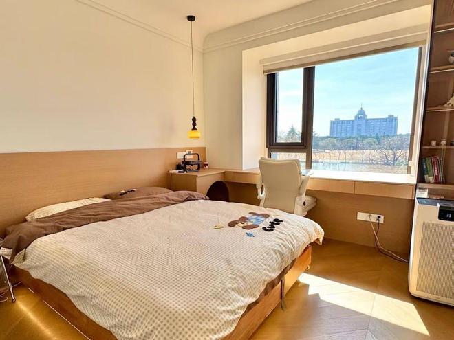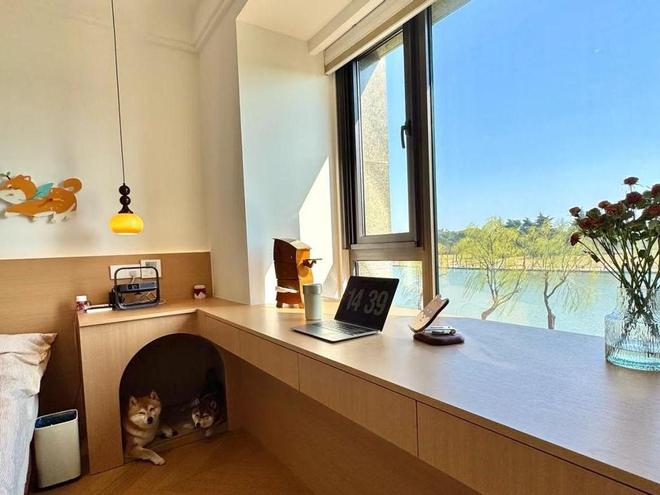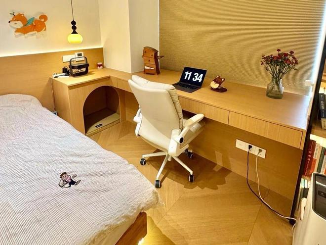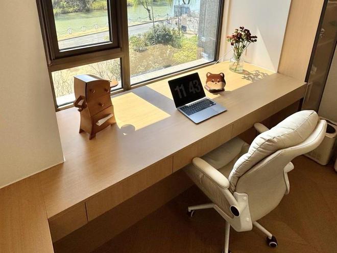 这种做法比单独购买书桌的费用差不多能省近千块,而且这个位置自然采光很好,下方的飘窗柜还可以用来储物。