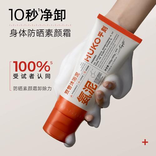 乎刻氨基酸白泥透净双管沐浴露:其“氨泥复配”配方能深层溶解防晒膜与素颜霜残留,无需专门的身体卸妆产品,敏感肌也能放心使用