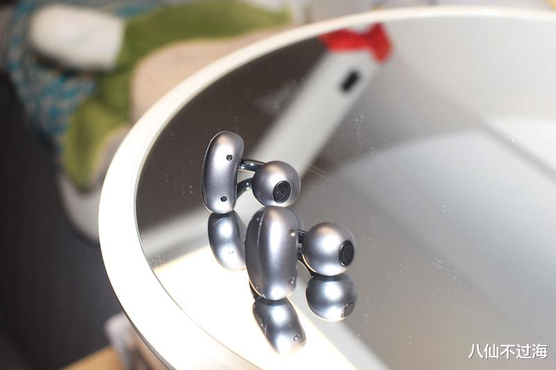 ▲“无感”是最高赞誉:耳夹式的结构配合类肤质的TPU材料,使其能轻柔而稳固地扣在耳廓上,避免了入耳式耳机的胀痛感。4.5g的重量分布均衡,即使是长时间佩戴(实测连续佩戴4小时),耳朵也几乎没有负担感。对于需要全天候使用耳机的办公族或学生党而言,这一点极具吸引力。