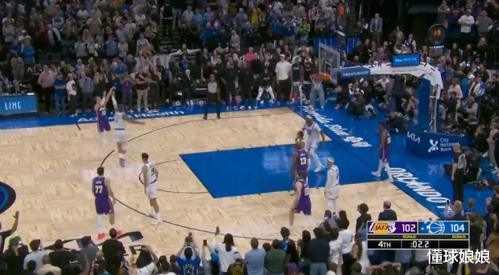 然后4.1秒魔术的边线球,又出现失误,球在争抢中出界,裁判是给了湖人球权,认为是班切罗碰出界的。