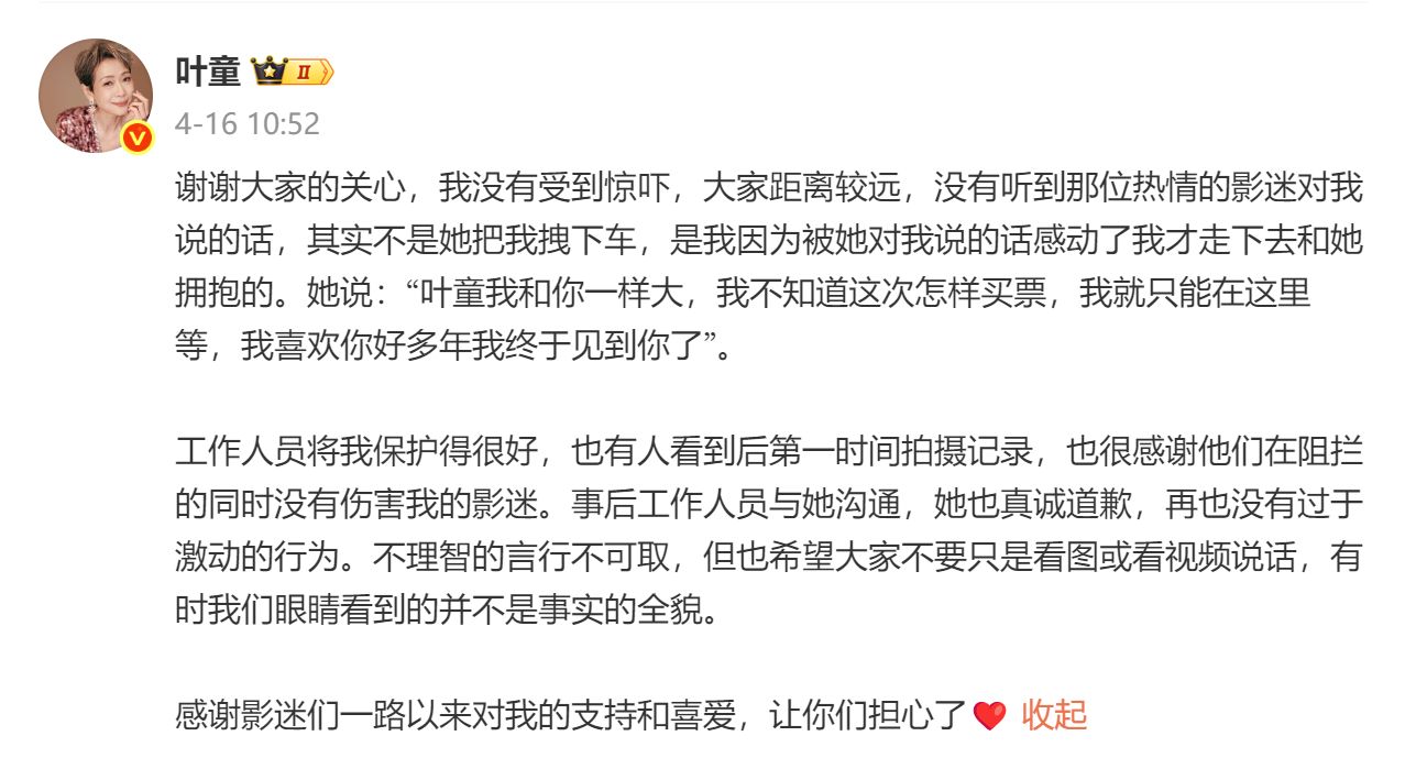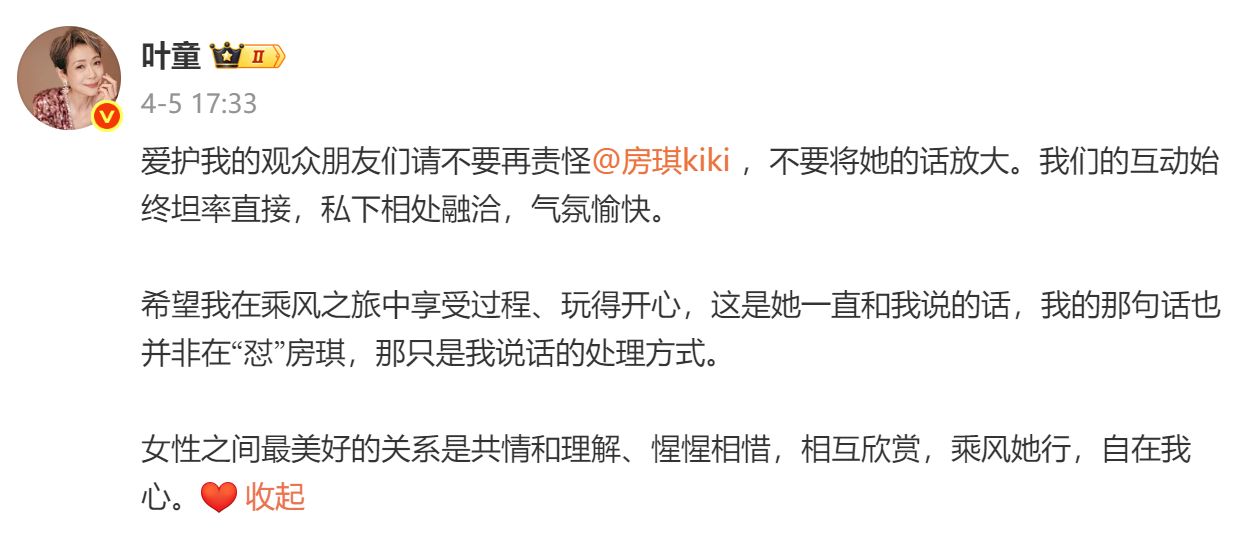 对待舞台,她全身心投入,力求完美;对待一同参赛的小辈,她真诚相待、推心置腹;面对外界对同伴的争议,她更是凭借高情商巧妙化解;对待疯狂粉丝,她及时出面,表示理解;对待衰老,她坦然接受,岁月馈赠;她那么从容,那么淡定,那么真诚,那么积极,那么善良,简直是所有“美好”的化身。
