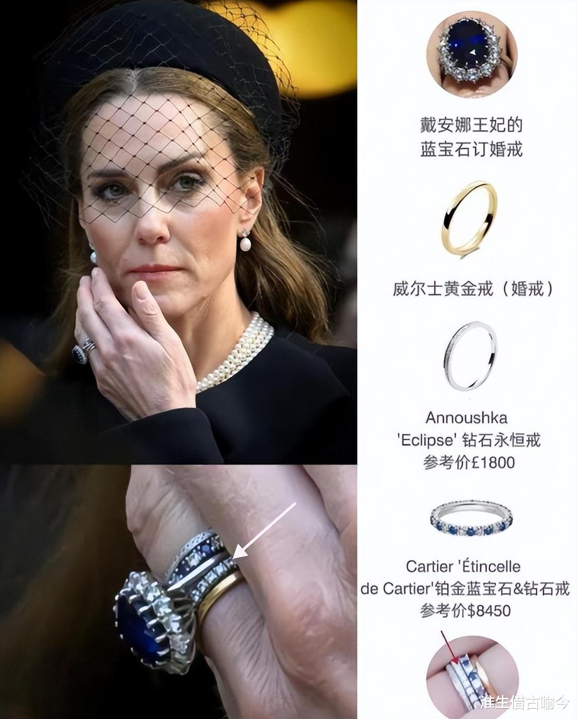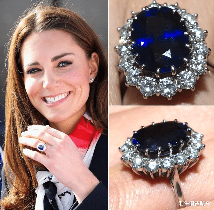 最夺目的,自然是那枚原属于她婆婆戴安娜的蓝宝石订婚戒。
