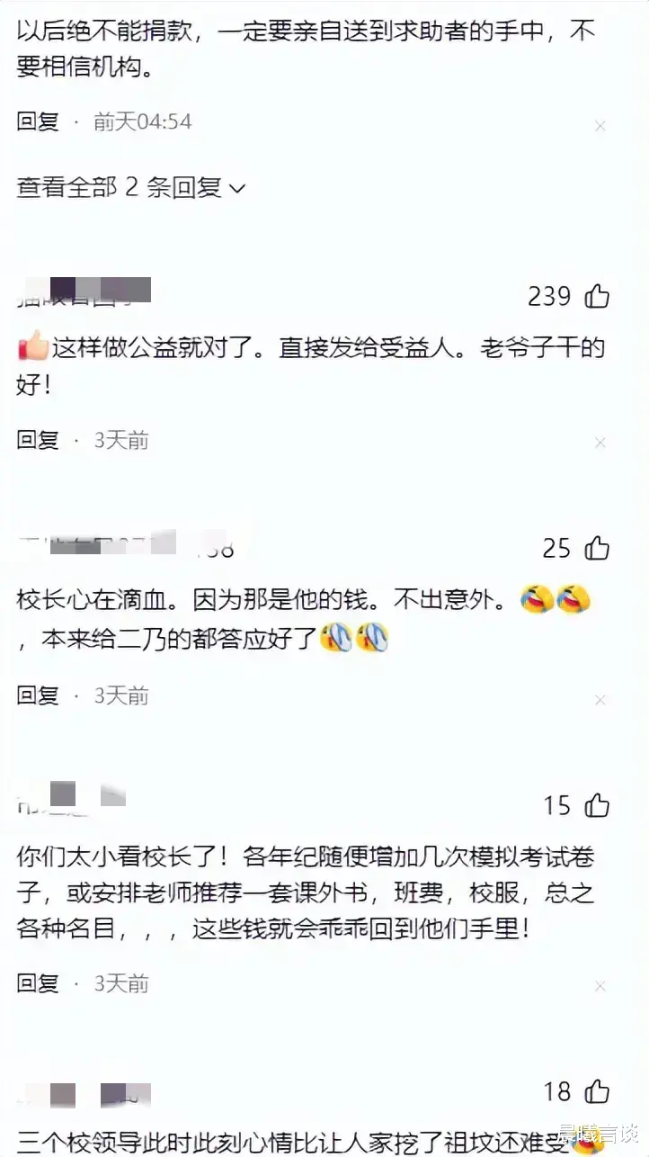 网友们私下里议论开了,说这些领导心里头可能正犯嘀咕呢:“嘿,老崔这是不给我们面子啊,钱直接发孩子手里,咱们学校这中间人的角色呢?”