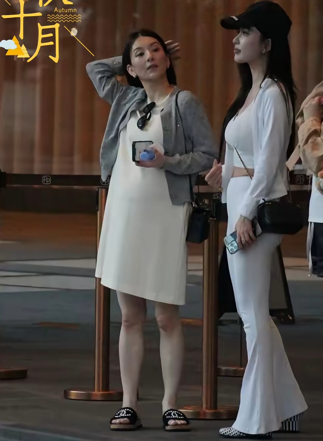 当天,方媛穿着白色连衣裙,脚踩香奈儿拖鞋,即便还有半个月就要临盆,但她的身型轻盈气色也很好。